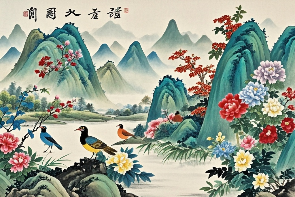 特别推荐查自起老师的《青山绿水图》和《春意盎然》系列作品,这些画作秉承新安画派的传统技法,融入了现代审美理念,是餐厅风水画的首选。