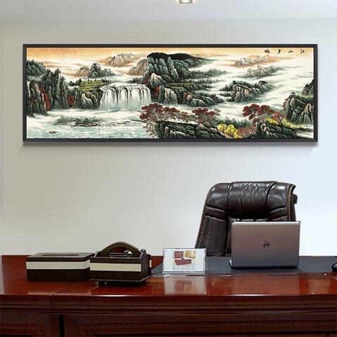 风水画在电脑桌周边的悬挂位置极其讲究。最佳位置是在电脑桌的正后方或侧后方,这样能够形成"有靠山"的格局。如果挂在正后方,画作的内容最好是稳重的山景,象征有强大的靠山支持;如果挂在侧后方,可以选择有流动水景的画作,象征财源从侧方而来。