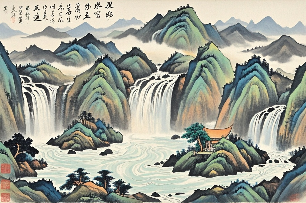 一幅优秀的聚宝盆风水画不仅仅是风水工具,更是一件具有极高艺术价值的作品。它融合了中国传统山水画的笔墨技巧与风水学的智慧,既能够美化环境,又能够调节气场。