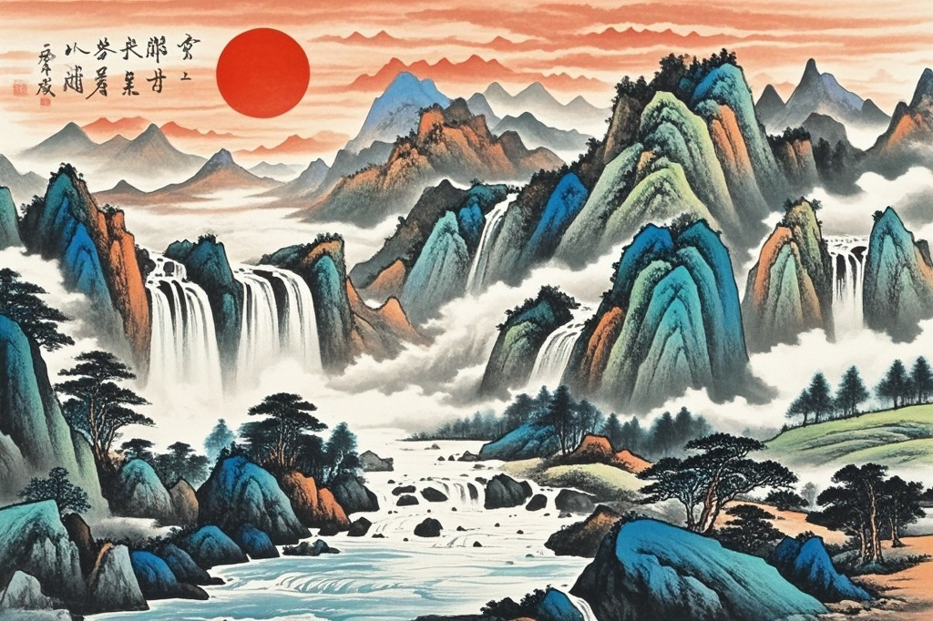 #属龙人招财 #旭日东升风水画 #源远流长风水画
