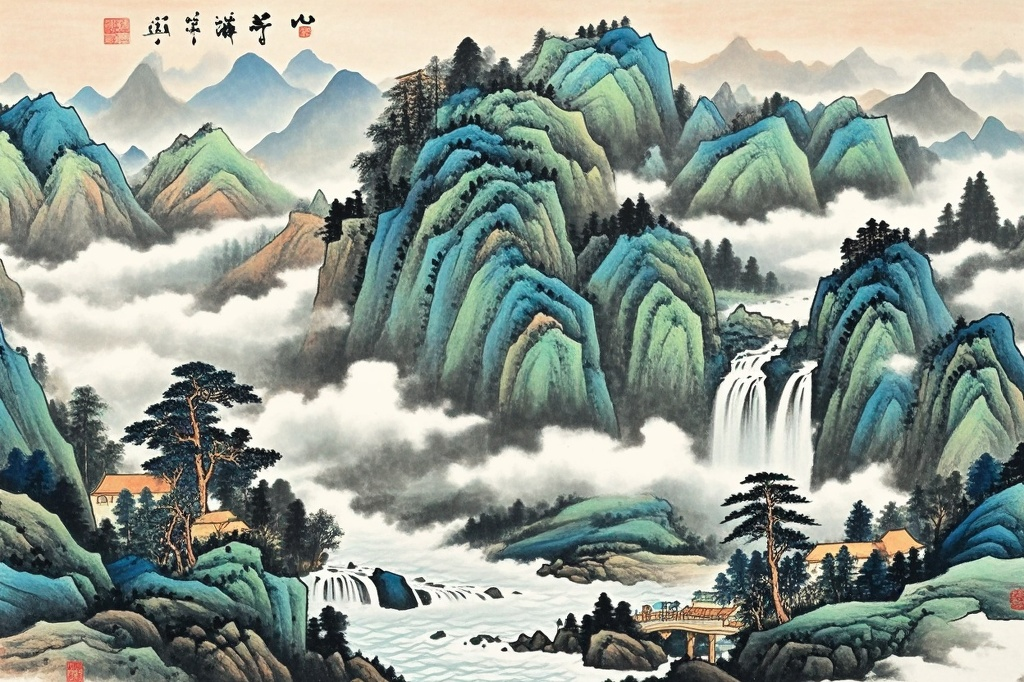 查自起先生的风水画作品不仅尺寸精准到位,更重要的是蕴含着深厚的文化底蕴和风水智慧。他的《青山绿水聚宝图》系列,采用150cm×75cm的标准尺寸,完美契合中户型客厅的需求,画中青山环抱、流水潺潺,寓意”背有靠山,前有活水”,是旺财纳福的绝佳选择。