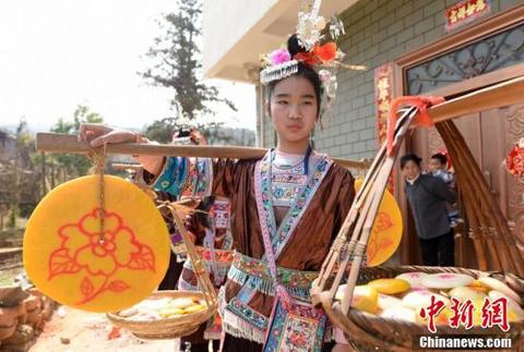 广西玉林 甘蔗需带9节以上 新娘亲手削蔗敬父母 取”长长久久(9)”之意