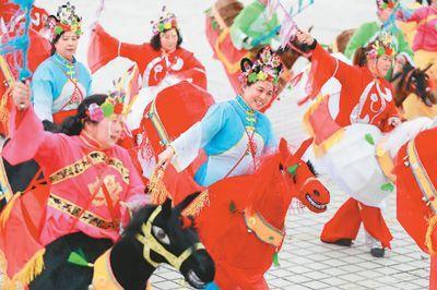 正式表演时,马灯的动作设计暗藏玄机。传统跳马灯有"探路"、"越涧"、"绕桩"、"摆阵"等套路,看似是模拟马的日常活动,实则是向马神展示"马的能力"。如"越涧"动作要求马灯演员跨越半人高的木凳,既考验技巧,也象征马能克服艰难险阻;"摆阵"则模仿古代军队的马队阵型,暗含对马神护佑平安的期待。
