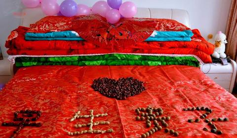 新婚被褥在传统婚俗中绝非普通的生活用品,而是承载着多重文化功能的“仪式性器物”。从选材到缝制,每一步都暗含讲究:棉花要选“双株棉”(同一根棉秆结双桃),象征夫妻同心;被面要选红色或金色,寓意红火富贵;缝被的人要选“全福人”(父母健在、子女双全的女性),借其福气为新人加持。