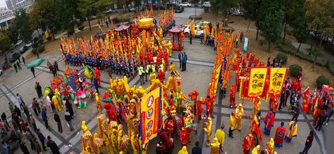 新北区的道教文化,从来不是躲在宫观里的“老古董”,而是渗进生活里的“活文化”。比如万绥东岳行宫的庙会,已经有上千年历史,2011年被列入常州市非物质文化遗产。庙会那天,孟河镇的街道像被染了色——红的灯笼、黄的旗子、蓝的布幡,还有卖糖葫芦的、捏面人的、耍杂技的,挤得满满当当。最热闹的是“抬东岳大帝”的仪式,十几个壮汉穿着红布衫,抬着大帝的神像游街,后面跟着舞龙的队伍,龙身的鳞片在太阳下闪着光,锣鼓声震得耳朵发麻,孩子们追着队伍跑,手里拿着糖人,脸上沾着糖稀,笑得像朵花。