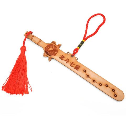 随着桃木剑成为文创产品,商家推出了“镇宅款”“招财款”“儿童款”等不同类型,每种类型都标注了“最佳悬挂方位”。比如某电商平台的“镇宅桃木剑”详情页写着:“建议悬挂于入户门楣,剑尖向下15度,可有效化解路冲煞。”这种标准化的指导,既是对传统民俗的简化,也推动了桃木剑文化的传播。