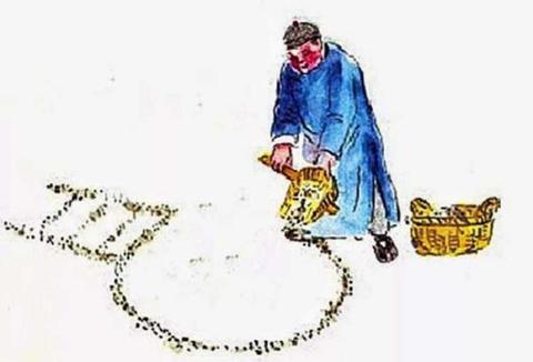 1. 画外框:用木锨或竹箕盛灰,沿着地面边撒边走,画出直径1-2米的圆圈,代表“粮囤的围墙”。讲究的人家会画多个圆圈,数量对应家中人口或田地数量(如5个圈代表“五谷丰登”)。