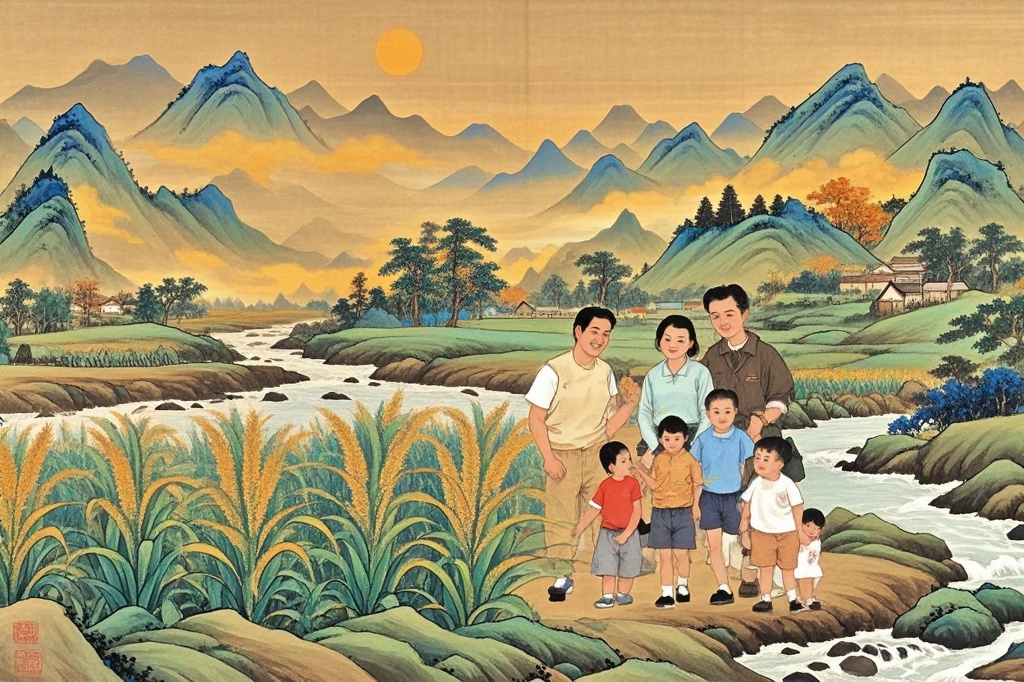 查自起先生的作品《家和万事兴》系列,特别适合土命夫妻。画面以暖黄色为主调,描绘了家庭和睦、儿孙满堂的美好场景,画中暗含的五行布局精妙绝伦,能够为悬挂者带来实实在在的运势提升。