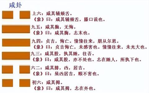 《易经》六十四卦中,"咸卦"(泽山咸,☱☶)位列第三十一,紧接在"离卦"(象征附着)之后,却以"感应"为核心,成为夫妻关系的哲学纲领。卦辞曰:"咸,亨,利贞,取女吉。"孔颖达疏解为:"咸,感也,以山感泽,因阴感阳,男女相感,亨通而得正。"这种"感"并非简单的情感冲动,而是"刚柔相济、阴阳互应"的深层契合——上卦为泽(☱,阴柔),下卦为艮(☶,阳刚),泽润山、山承泽,恰如夫妻之间"柔以承刚、刚以护柔"的动态平衡。