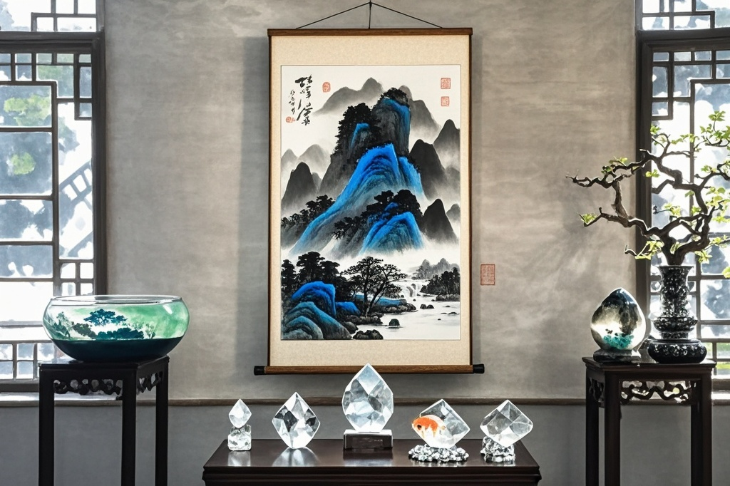 风水画与摆件的协调还体现在色彩和材质的搭配上。不同的颜色代表着不同的五行属性,而不同的材质则影响着能量的传导和转化。