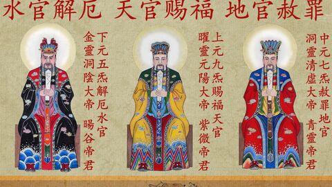 要弄清楚“天官赐福”符的焚化时间,首先得明白“天官”的身份。根据《历代神仙通鉴》《三官经》等道教经典记载,“天官”全称“上元一品赐福天官紫微大帝”,与“中元二品赦罪地官清虚大帝”“下元三品解厄水官洞阴大帝”并称为“三官大帝”,共同掌管人间福祸。