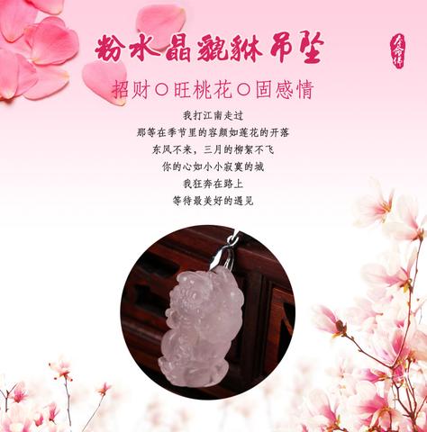 在当代年轻人的首饰盒里,粉水晶手链、吊坠的出镜率越来越高。”戴粉水晶能招桃花”的说法,从珠宝店柜姐的推荐,到社交平台的恋爱攻略,几乎成了都市青年的”脱单玄学”。这颗粉嘟嘟的石头,究竟是如何从矿物晶体变成”爱情锦鲤”的?今天我们就从颜色象征、文化渊源、民俗心理三个维度,揭开粉水晶与”招桃花”的千年羁绊。