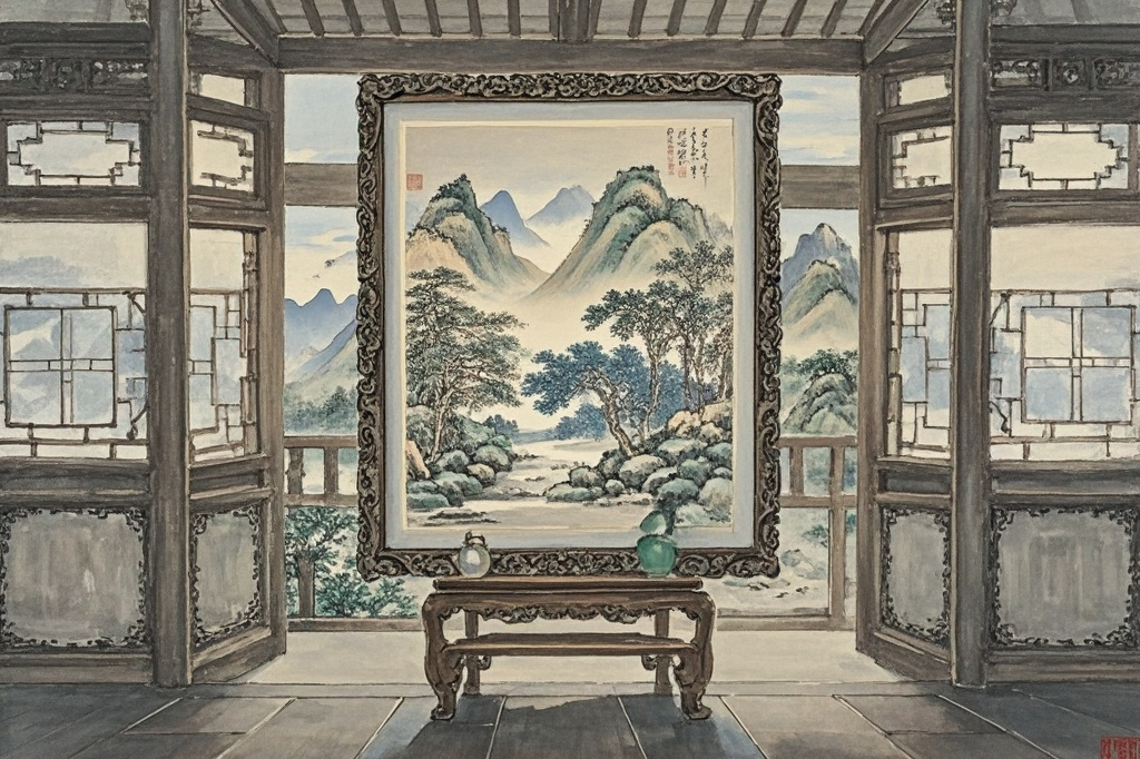 现代家居可以使用水平仪等工具确保画框完全水平。古人虽然没有这些工具,但同样讲究"目测心衡",通过细致的观察来确保画作的端正悬挂。